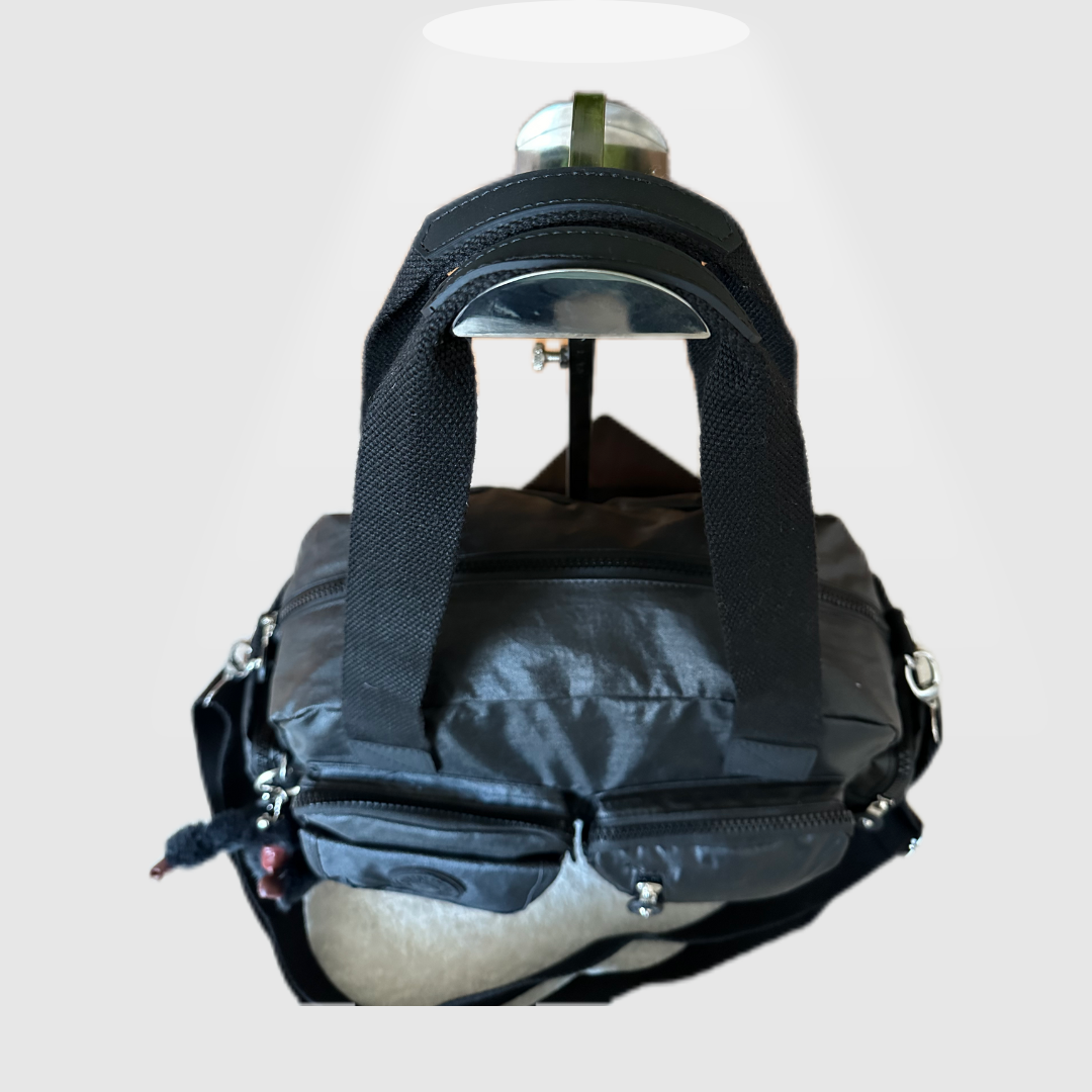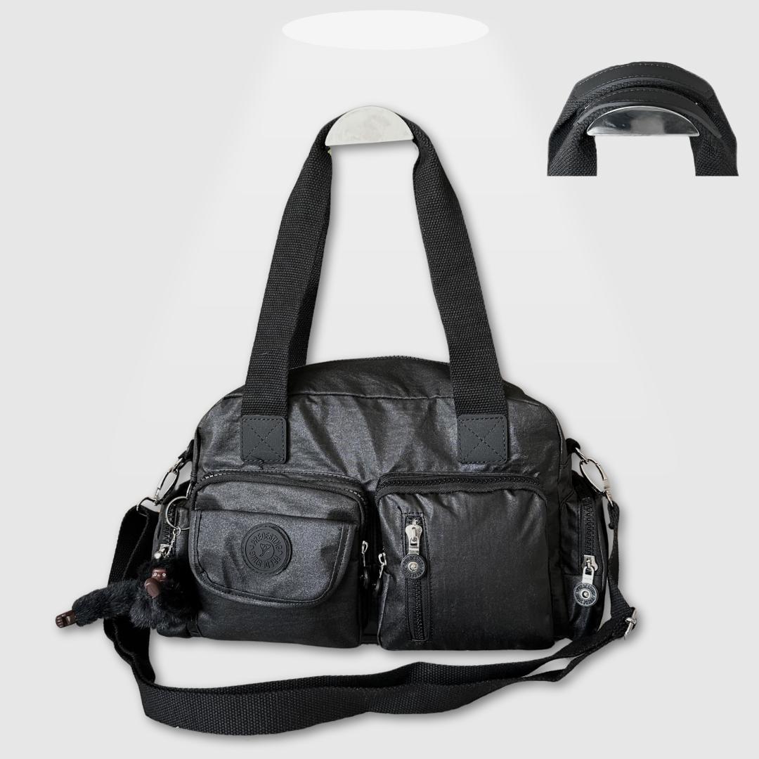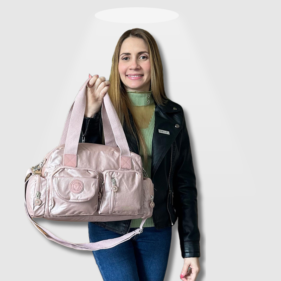 Bolso de 8 compartimientos ideal para llevar tus cosas esenciales gracias a sus múltiples compartimientos y diseño con un estilo en tela impermeable metalizada.