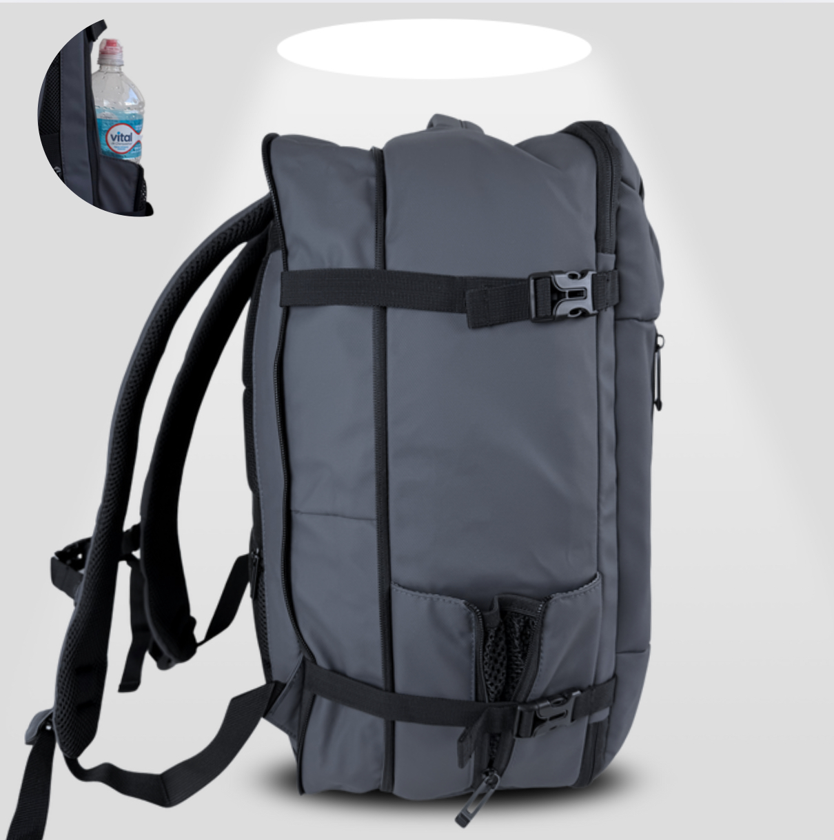 Viaja ligero y sin pagar maletas extras con la Mochila de Viaje Expandible Vancouver. Diseñada para cumplir con las medidas de las aerolíneas y llevar en el compartimiento superior o debajo del asiento del avión como bolso de mano o artículo personal sin tener que facturarla. ofrece 40L de capacidad, viene con un set organizador incluido, tela impermeable, bolsillo especial para botellon de agua térmico Ideal para viajes de 5 a 7 diás, ejecutivos, de turismo y familias organizadas.