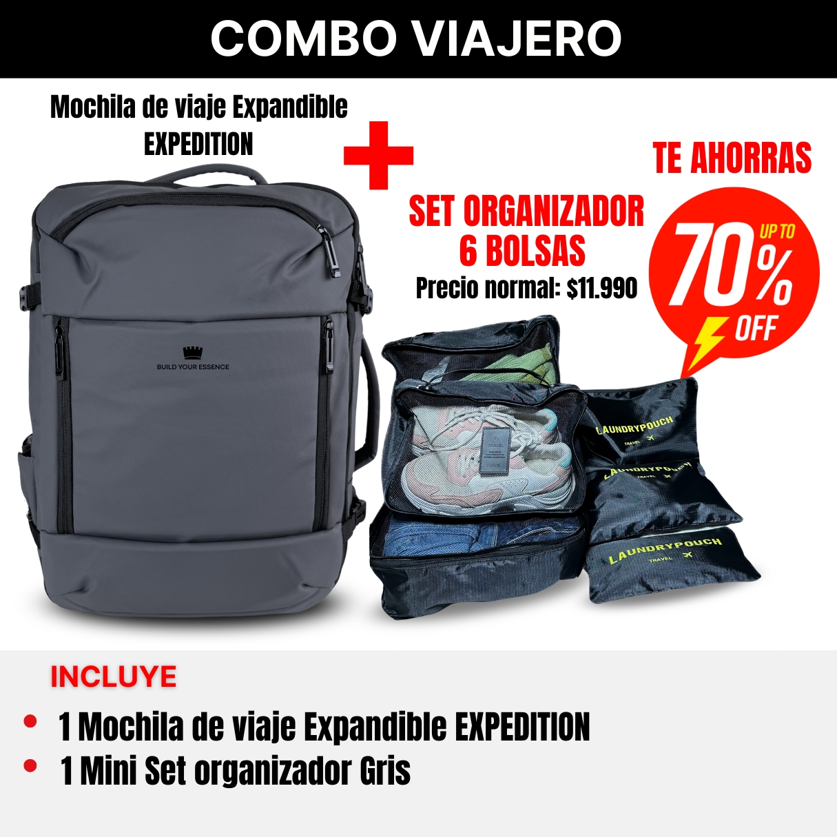Viajar nunca fue tan cómodo. Con el Combo Viajero llevas tu mochila de cabina que cumple las medidas exactas exigidas por las aerolíneas ✈️ y además un set organizador que mantiene tu ropa y accesorios en orden. Olvídate del estrés y de pagar extras: viaja ligero, práctico y con todo bajo control. Una solución pensada para quienes disfrutan cada trayecto con estilo y comodidad.