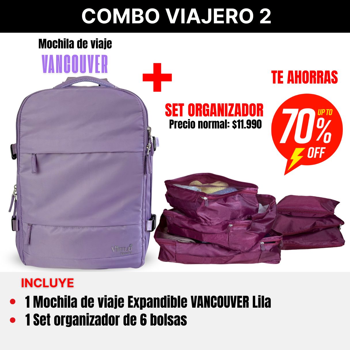 Viajar nunca fue tan cómodo. Con el Combo Viajero llevas tu mochila de cabina que cumple las medidas exactas exigidas por las aerolíneas ✈️ y además un set organizador que mantiene tu ropa y accesorios en orden. Olvídate del estrés y de pagar extras: viaja ligero, práctico y con todo bajo control. Una solución pensada para quienes disfrutan cada trayecto con estilo y comodidad.