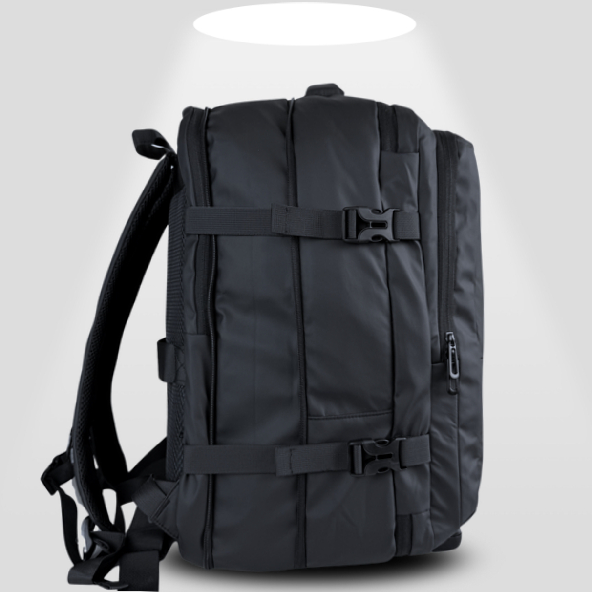 Viaja ligero y sin pagar maletas extras con la Mochila de Viaje Expandible Vancouver. Diseñada para cumplir con las medidas de las aerolíneas y llevar en el compartimiento superior o debajo del asiento del avión como bolso de mano o artículo personal sin tener que facturarla. ofrece 40L de capacidad, viene con un set organizador incluido, tela impermeable, bolsillo especial para botellon de agua térmico Ideal para viajes de 5 a 7 diás, ejecutivos, de turismo y familias organizadas.