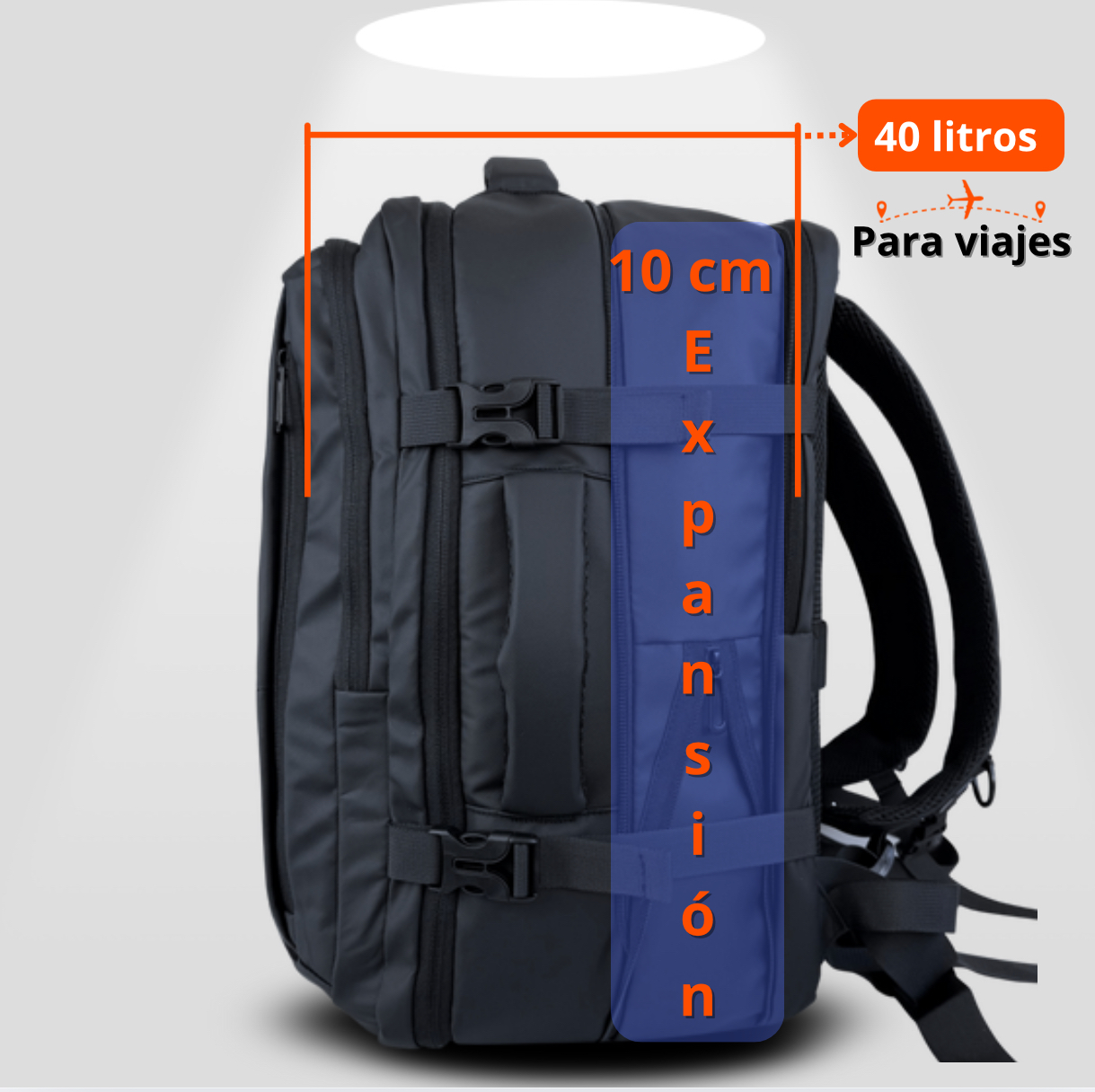 🎒 Diseñada para llevar bajo el asiento del avión