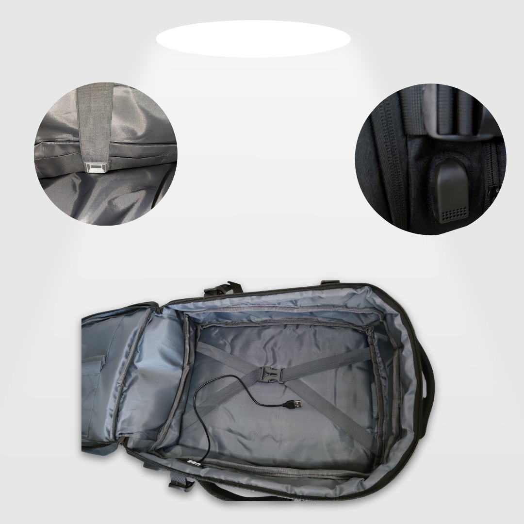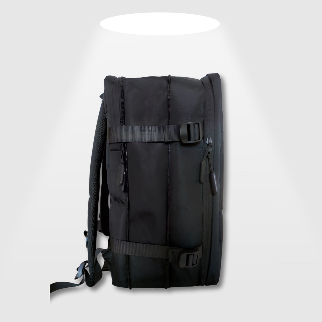 Viaja ligero y sin pagar maletas extras con la Mochila de Viaje Expandible Vancouver. Diseñada para cumplir con las medidas de las aerolíneas y llevar en el compartimiento superior o debajo del asiento del avión como bolso de mano o artículo personal sin tener que facturarla. ofrece 40L de capacidad, viene con un set organizador incluido, tela impermeable, bolsillo especial para botellon de agua térmico Ideal para viajes de 5 a 7 diás, ejecutivos, de turismo y familias organizadas.