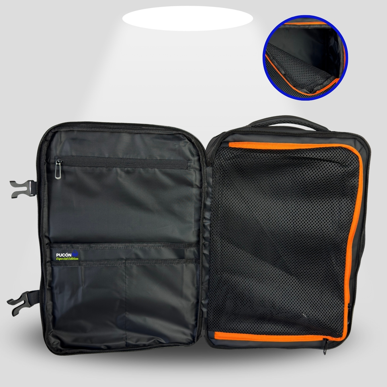Imagina abordar tu vuelo sin preocupaciones, pasando directo a cabina con todo lo que necesitas para 5 a 7 días. La Mochila de viaje expandible Pucón está diseñada para que viajes con libertad, comodidad y sin pagar equipaje adicional.