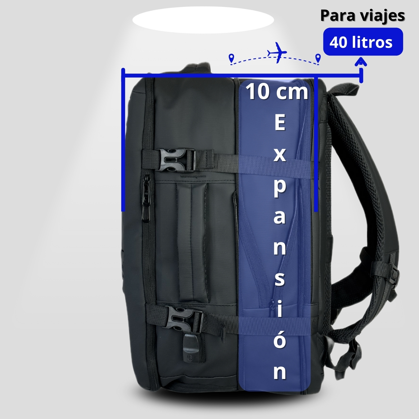 🎒 Capacidad expandible de 40L: Perfecta para viajes de 5 a 7 días, sin necesidad de maleta adicional.