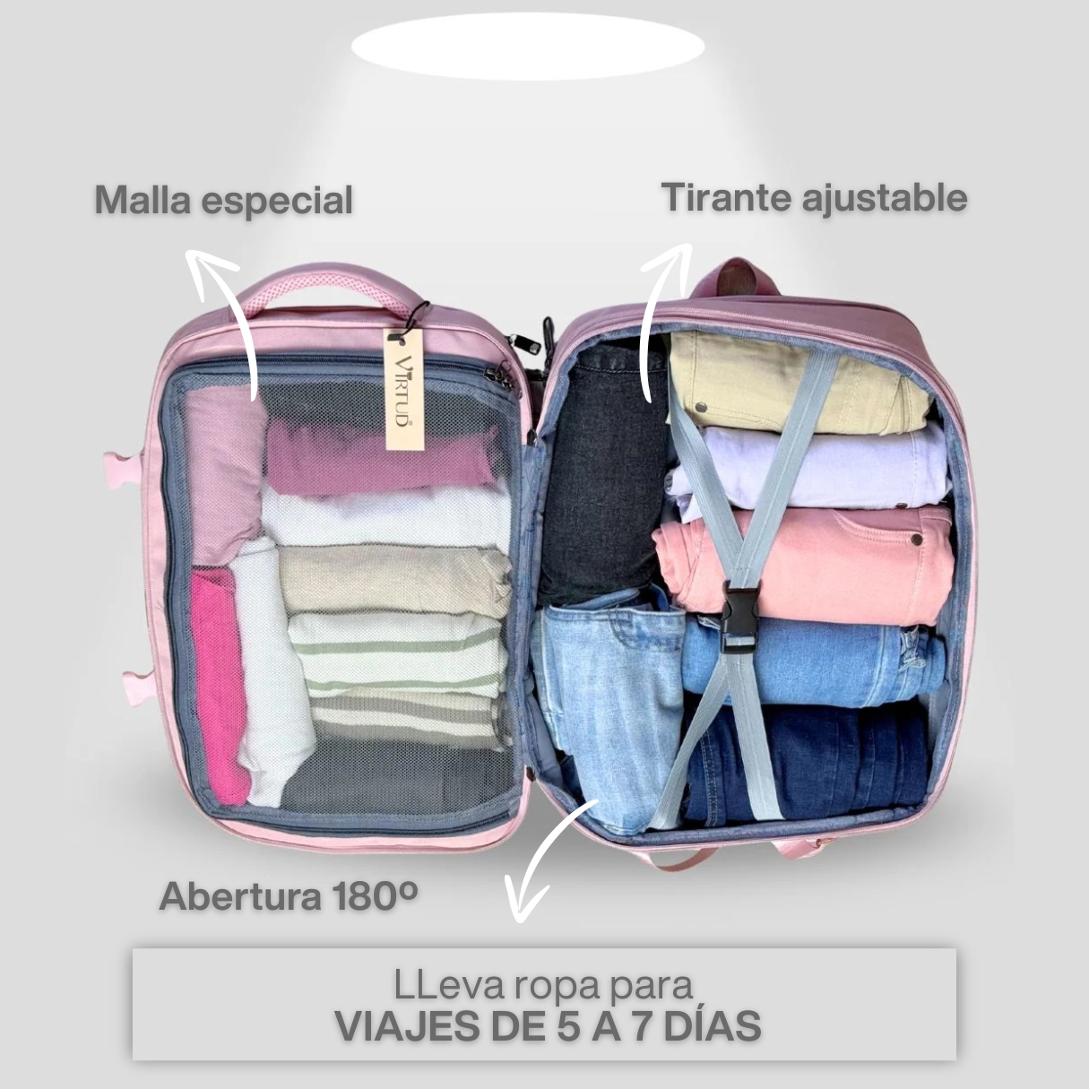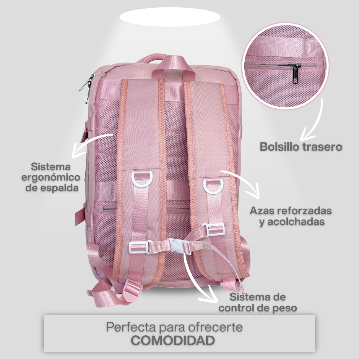 🎒 Diseñada para llevar bajo el asiento del avión