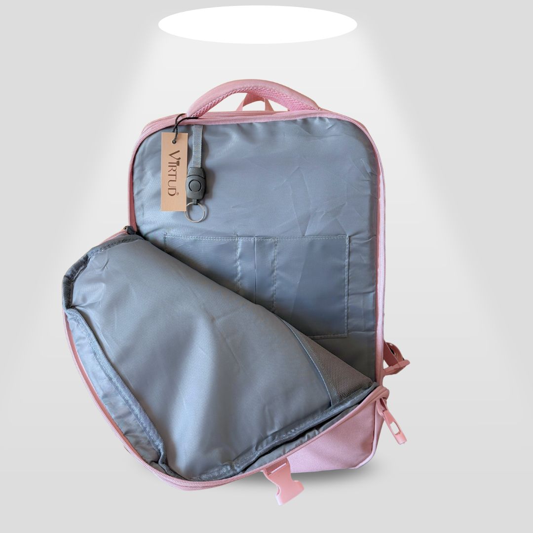 Me encantó esta mochila. La compré por sus medidas aprobadas para cabina, pero lo que más me sorprendió fue su organización interna. Tiene bolsillos para todo, incluso para el laptop. Ideal para viajar. la recomiendo 100%