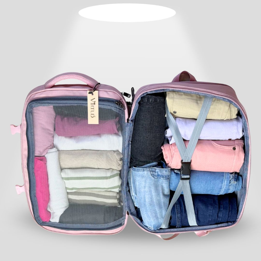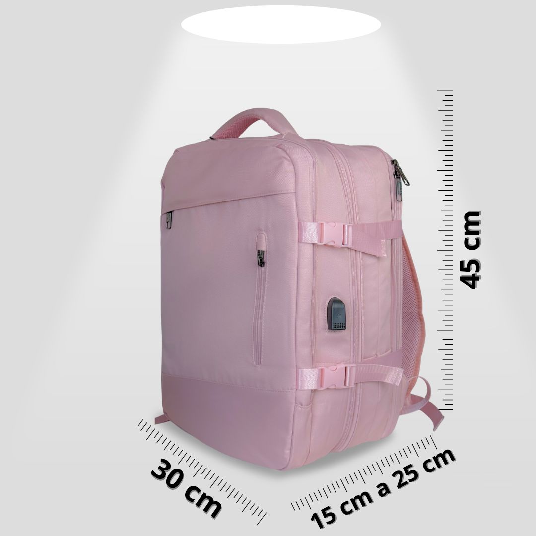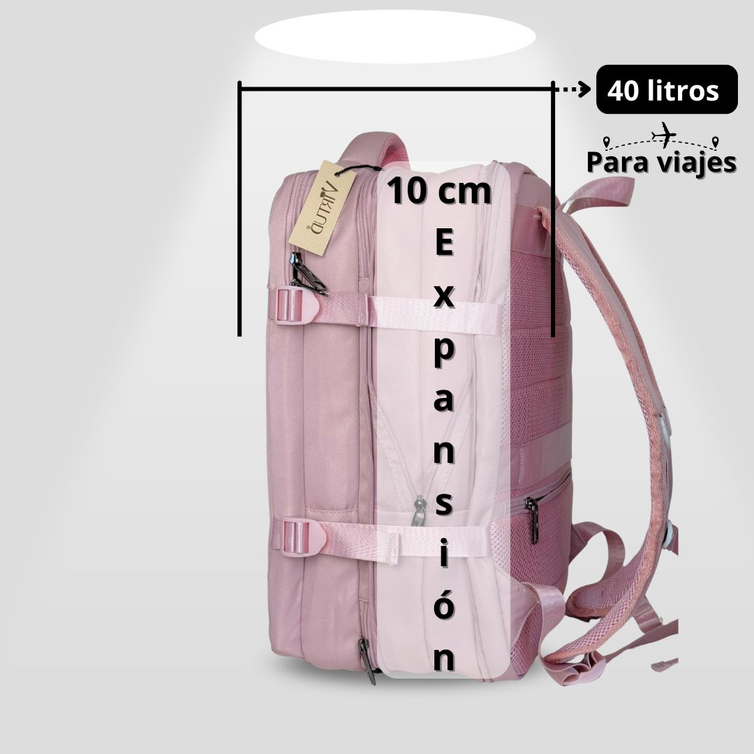Viaja ligero y sin pagar maletas extras con la Mochila de Viaje Expandible Premium Pro. Diseñada para cumplir con las medidas de las aerolíneas y llevar en el compartimiento superior o debajo del asiento del avión como bolso de mano o articulo personal sin tener que facturarla. ofrece 40L de capacidad, tela impermeable, compartimentos inteligentes y puerto USB-C. Ideal para viajes cortos, ejecutivos, de turismo y familias organizadas.