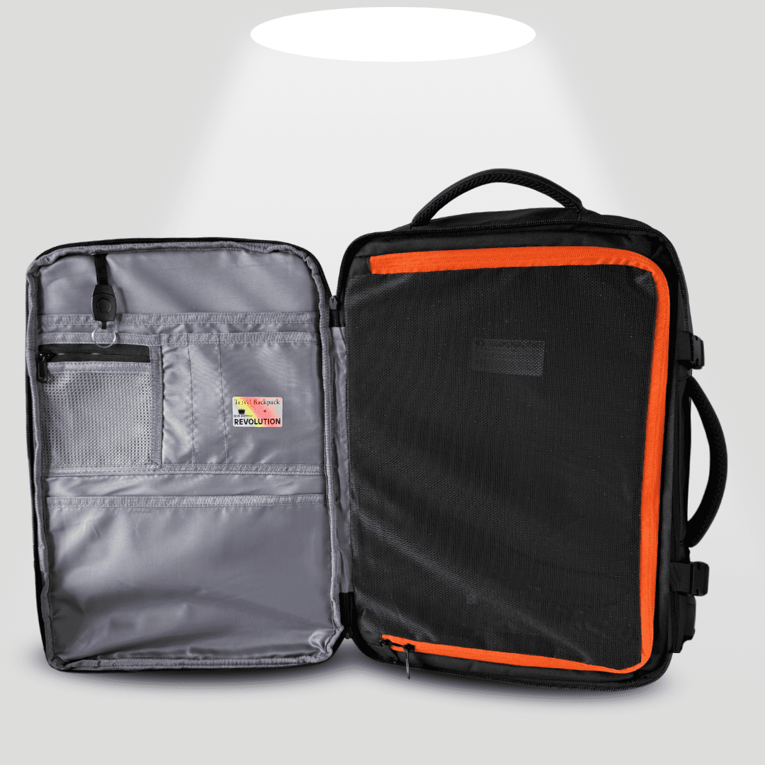 Imagina abordar tu vuelo sin preocupaciones, pasando directo a cabina con todo lo que necesitas para 5 a 7 días. La Mochila de viaje expandible Revolution está diseñada para que viajes con libertad, comodidad y sin pagar equipaje adicional.
