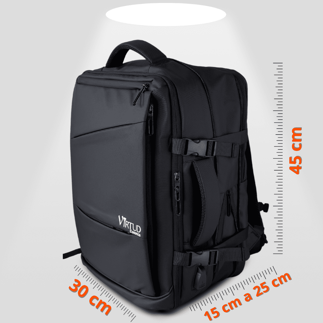 📏 Medidas adaptables: Comprimida 45cm x 30cm x 15cm -Expandida 45cm x 30cm x 25cm → Cumple con normativas de equipaje de mano, ahorrando costos extra.