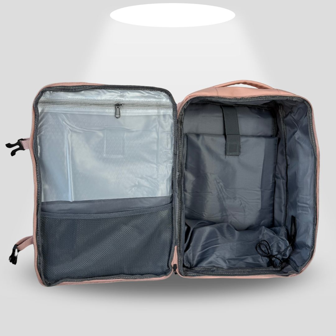 🎒 Diseñada para llevar bajo el asiento del avión