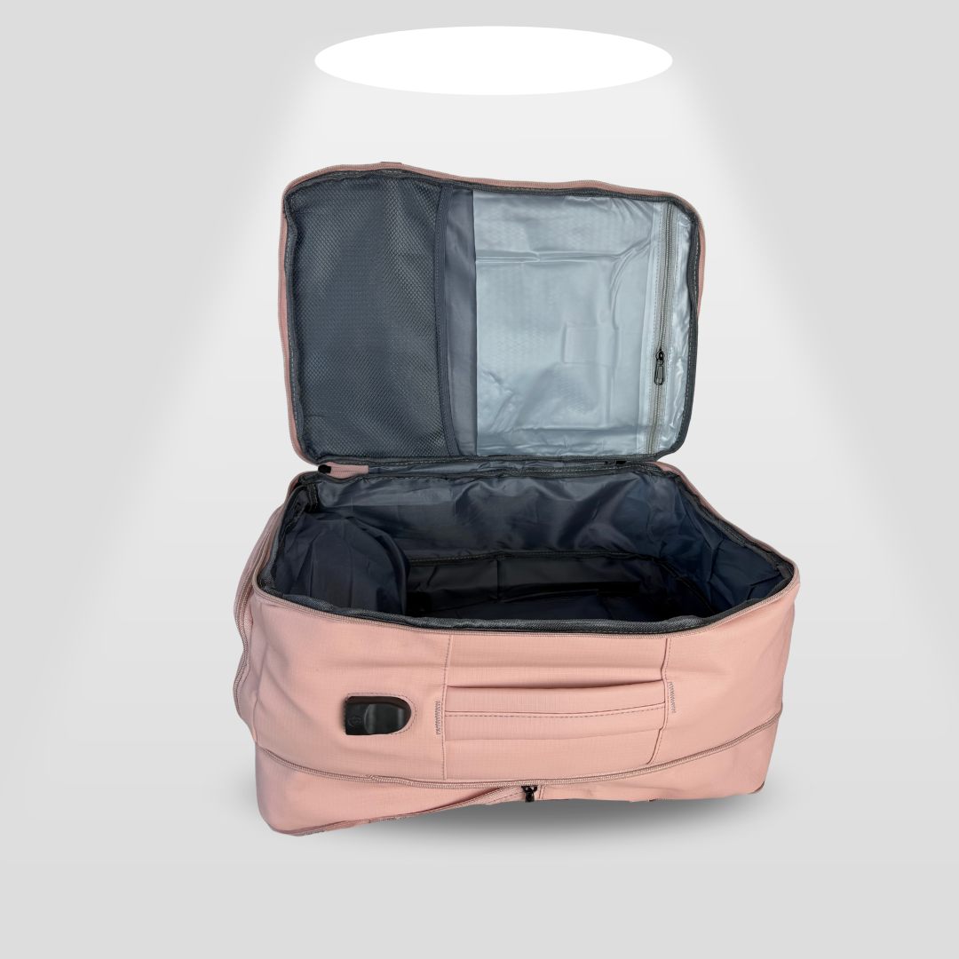 Gracias a su tamaño optimizado, cumple con las medidas oficiales de las aerolíneas, permitiéndote llevarla en el compartimiento superior o debajo del asiento como bolso de mano o artículo personal, sin pagar equipaje extra.