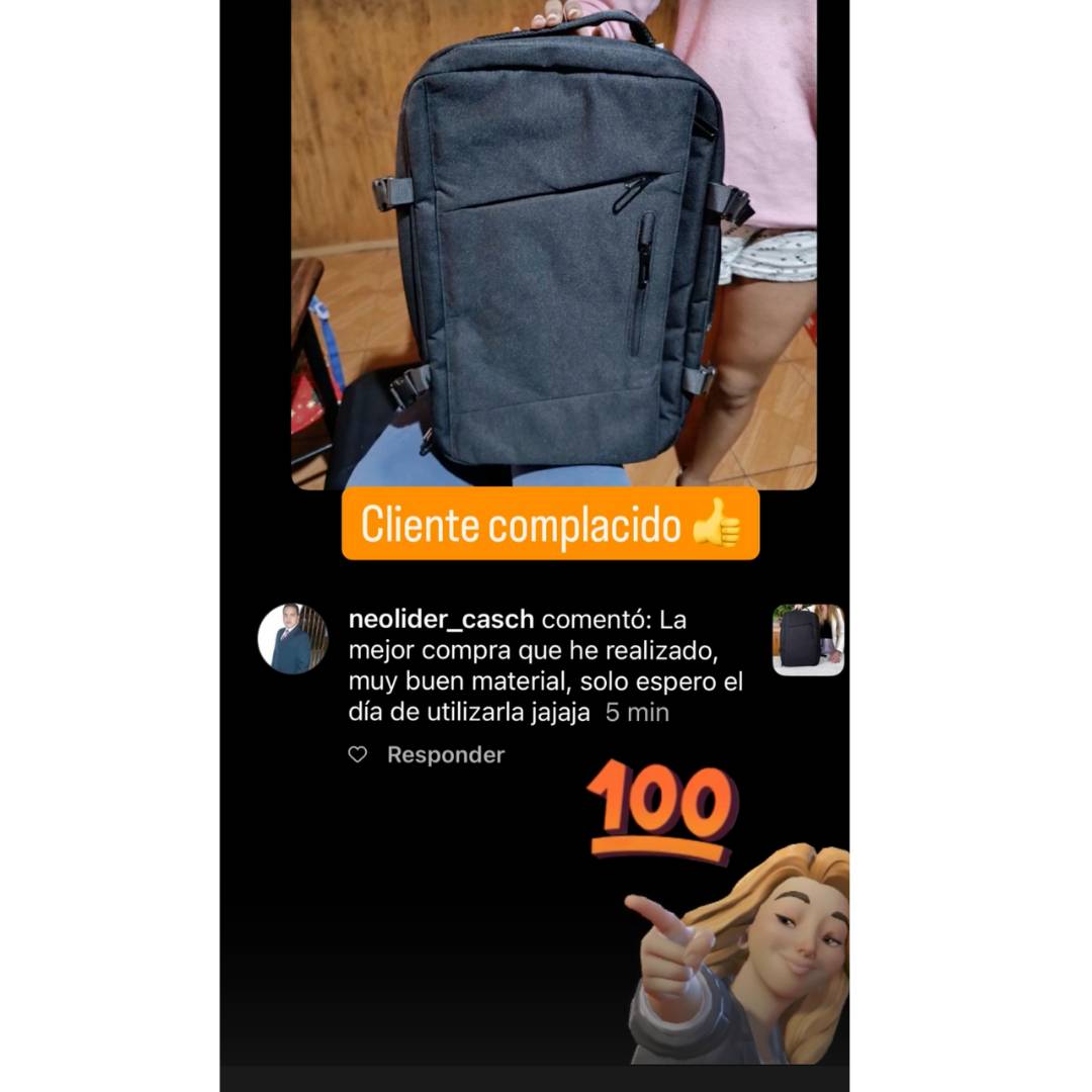 Viajar nunca fue tan cómodo. Con el Combo Viajero llevas tu mochila de cabina que cumple las medidas exactas exigidas por las aerolíneas ✈️ y además un set organizador que mantiene tu ropa y accesorios en orden. Olvídate del estrés y de pagar extras: viaja ligero, práctico y con todo bajo control. Una solución pensada para quienes disfrutan cada trayecto con estilo y comodidad.