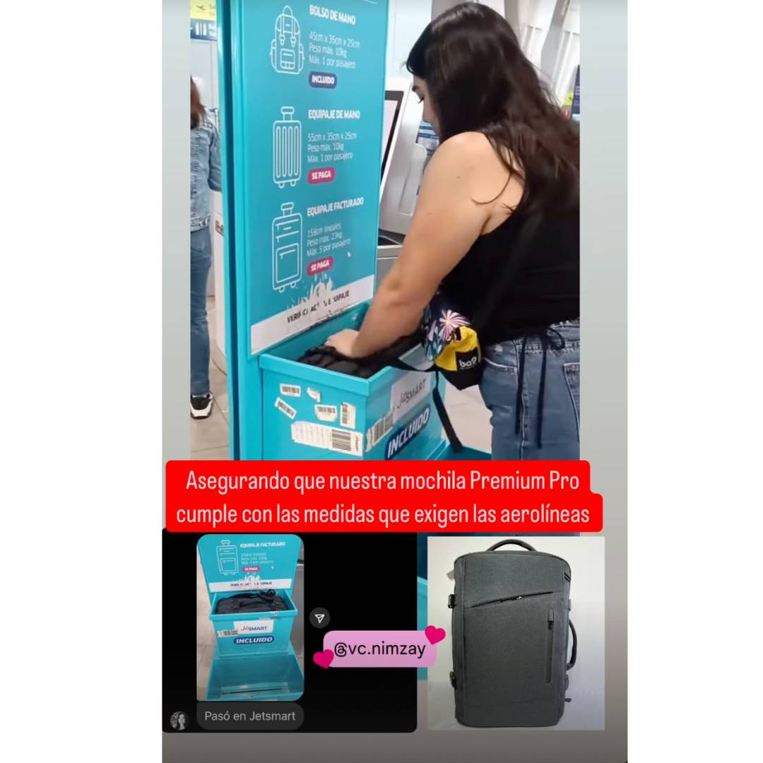 Excelente la mochila premiun pro, nos sirvio a nuestro viaje a brasil, nos encanto y además no tuvimos ningún incoveniente en Sky, Pasa perfecto como equipaje de mano. 100% Recomendada.