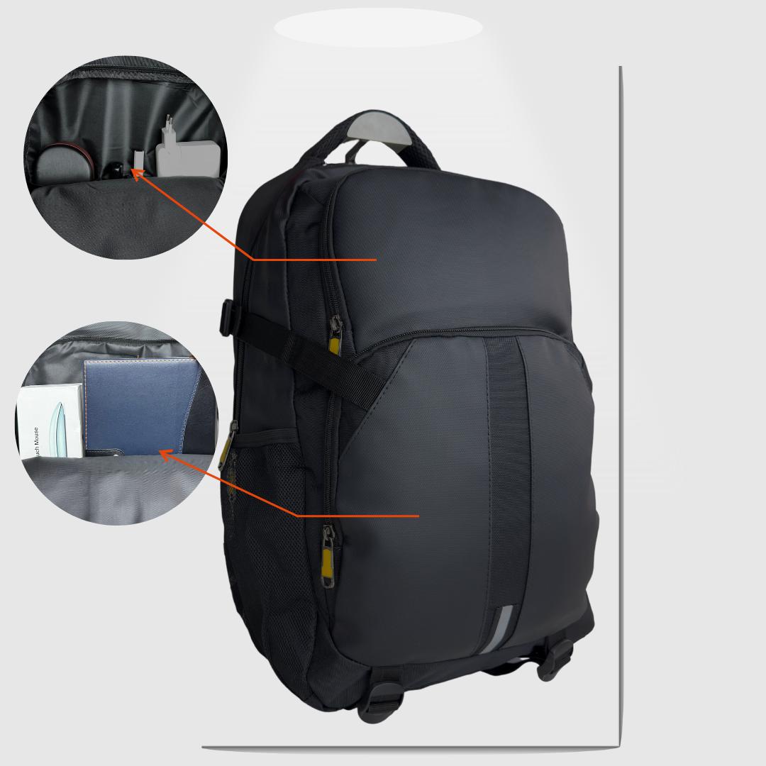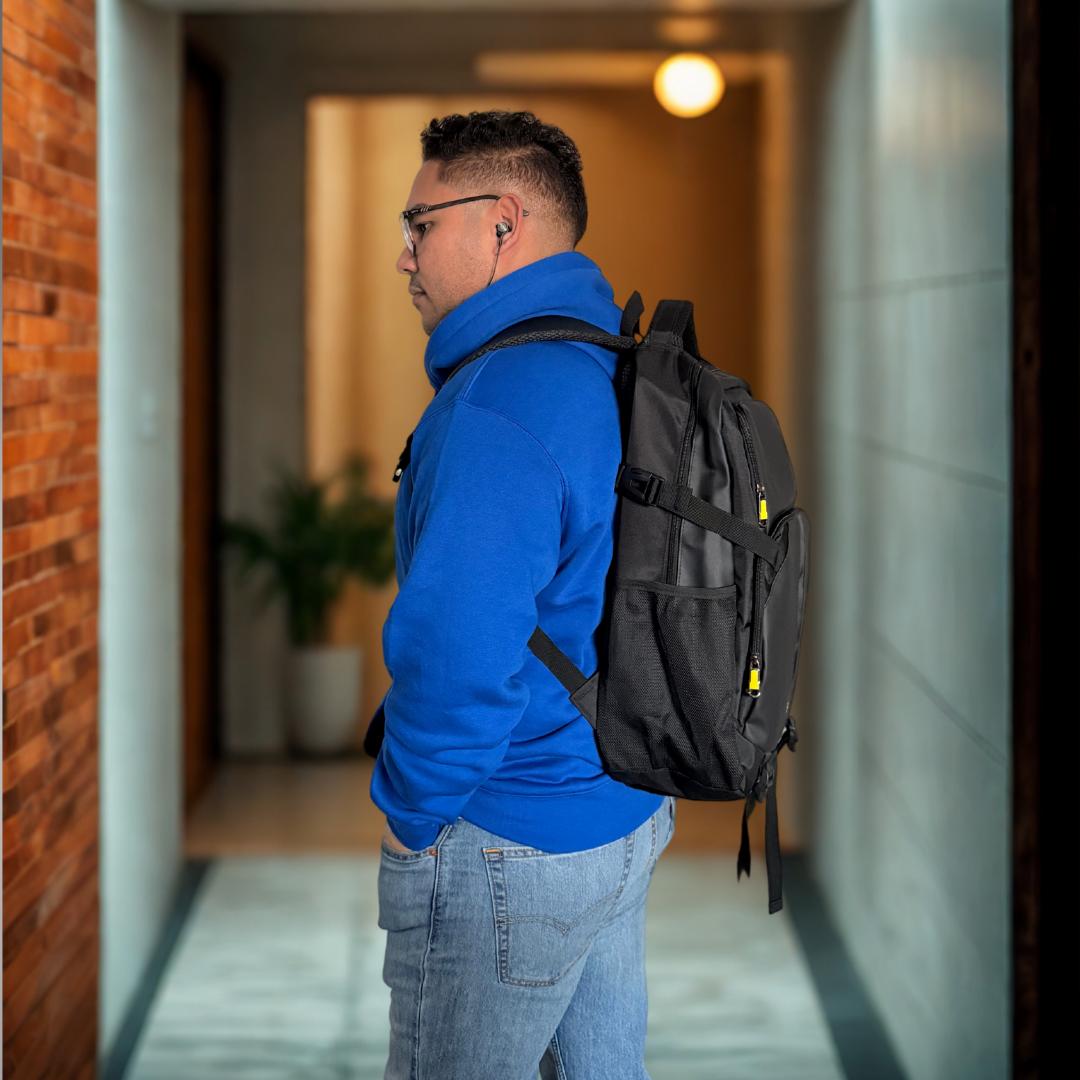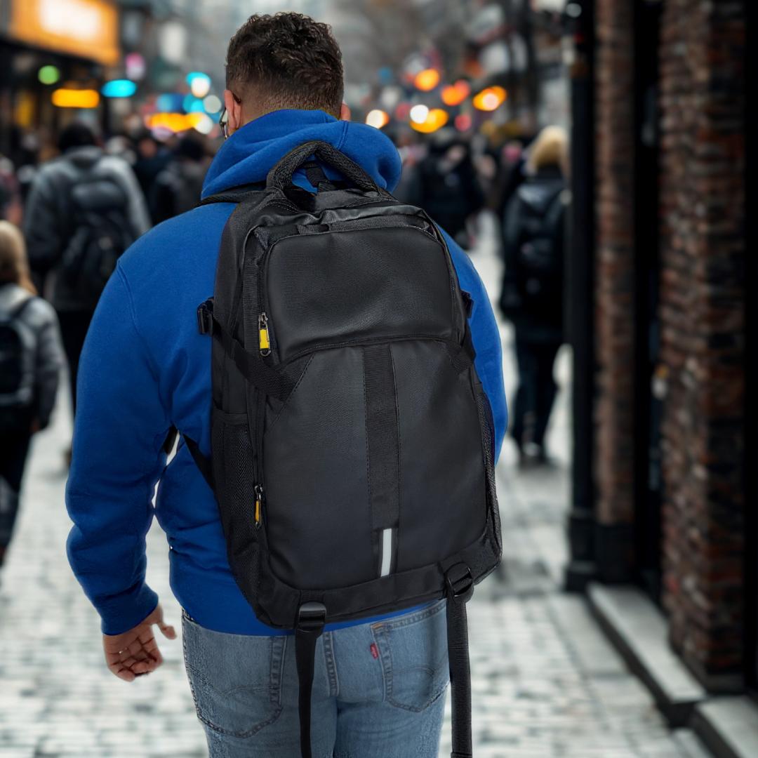 Mochila de viaje expandible Dublin Pro, de 5 compartimientos uno de ellos especial para llevar la notebook y esta diseñada en tela impermeable firme y resistente.